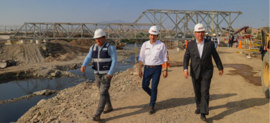 El ministro de Transportes y Comunicaciones, Raúl Pérez Reyes, realizó una visita de supervisión a los trabajos de instalación de los puentes modulares que servirán de acceso para el nuevo Aeropuerto...